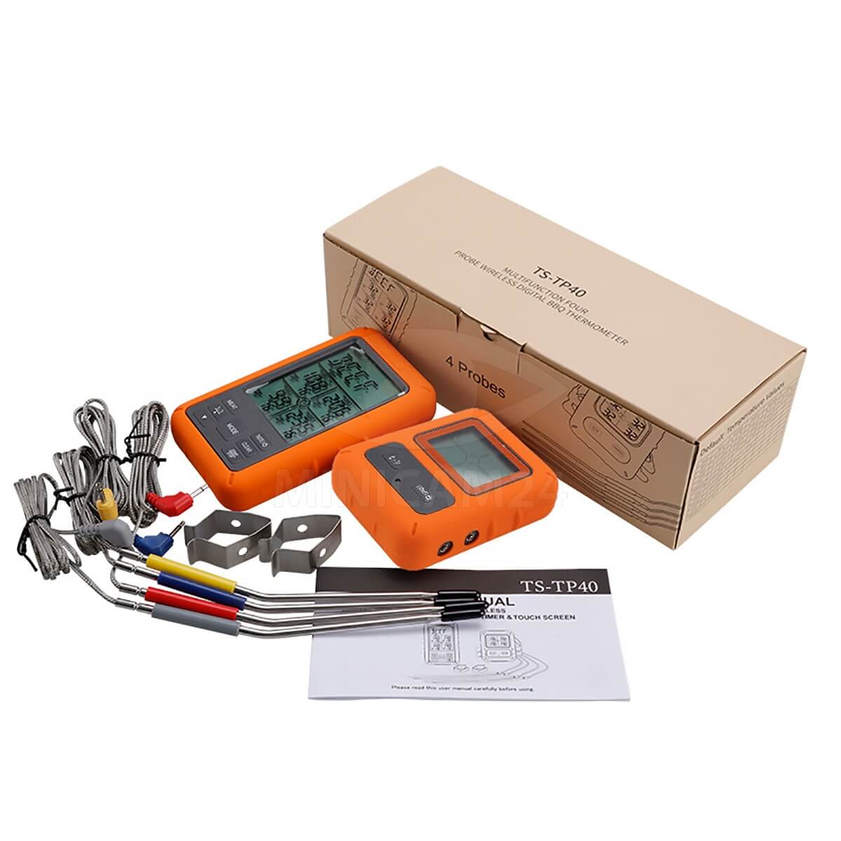 В комплект входит 4 щупа, что позволяет одновременно следить за температурой в нескольких точках или контролировать разные блюда. Это особенно удобно при приготовлении сложных рецептов, требующих одновременной готовки нескольких компонентов. Щупы легко фиксируются с помощью прилагаемых зажимов, что обеспечивает стабильное измерение температуры и предотвращает их смещение.